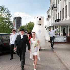 — свадьба. После предложения, естественно, приходит день, когда белоснежное платье, картеж и кольца становятся самым актуальным вопросом. Не менее остро стоит и вопрос подарка для молодожёнов . Очаровательный мишка-великан, встречающий пару у ЗАГСа, становится самым ярким сюрпризом в этот день! Он не только развлечет гостей, но и откроет танцевальную шоу-программу, отлично разнообразит свадебные фото и видео.